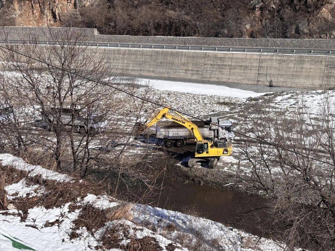 1月22日,大石河的主河道里仍覆盖着薄薄的白雪,挖掘机将河道中央的土方挖到河道两旁,一辆辆工程车往返平整着场地,今年3月,水库大坝主体施工将正式开启。